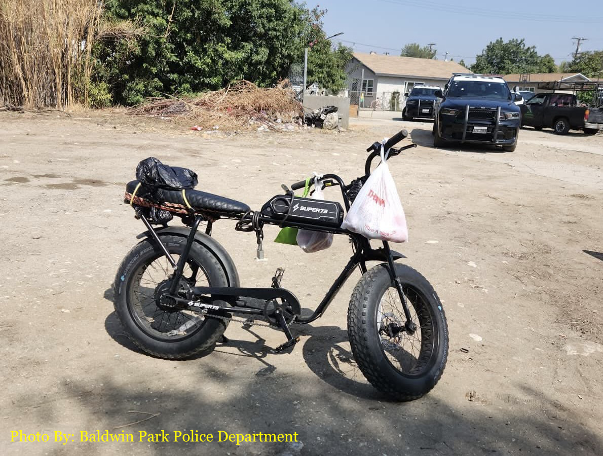 Una bicicleta eléctrica robada fue recuperada y devuelta a su legítimo propietario después de una rápida acción de los oficiales del Departamento de Policía de Baldwin Park, quienes respondieron a un informe de robo la semana pasada.