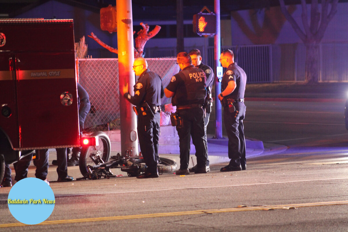 Aproximadamente a las 7:14 p.m., el Departamento de Policía de Baldwin Park y el Departamento de Bomberos del Condado de Los Ángeles fueron enviados a Olive Street y Baldwin Park Boulevard por una Colisión de Tránsito reportada después de recibir informes de un ciclista atropellado por un vehículo.