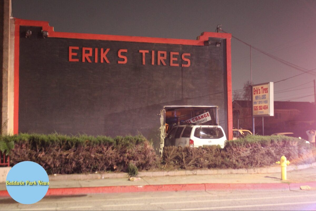 At approximately 12:49 a.m., officers with the Baldwin Park Police Department, along with personnel from the Los Angeles County Fire Department Station 29, responded to reports of a traffic collision involving a commercial structure in the 13900 block of Ramona Boulevard.